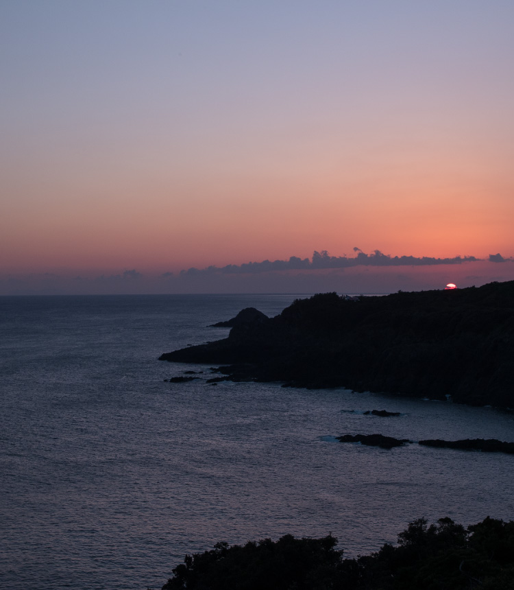 雄大なモッチョム岳を背に、東シナ海から太平洋に続く大海原が