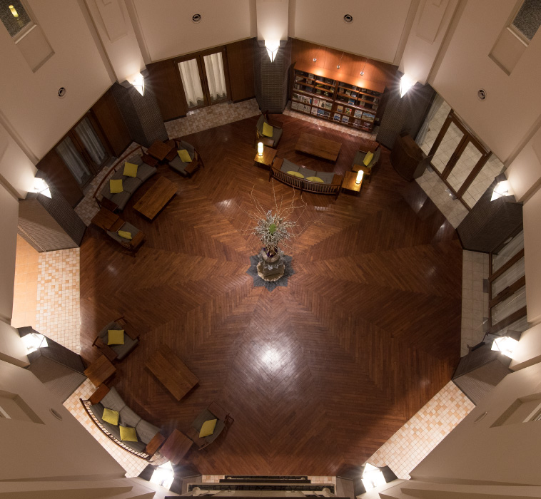 大きなガラス扉の先に広がる